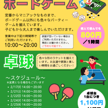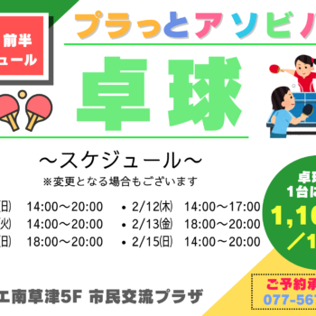 プラっとアソビバ『卓球』2月前半スケジュール
