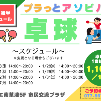 プラっとアソビバ『卓球』1月後半スケジュール