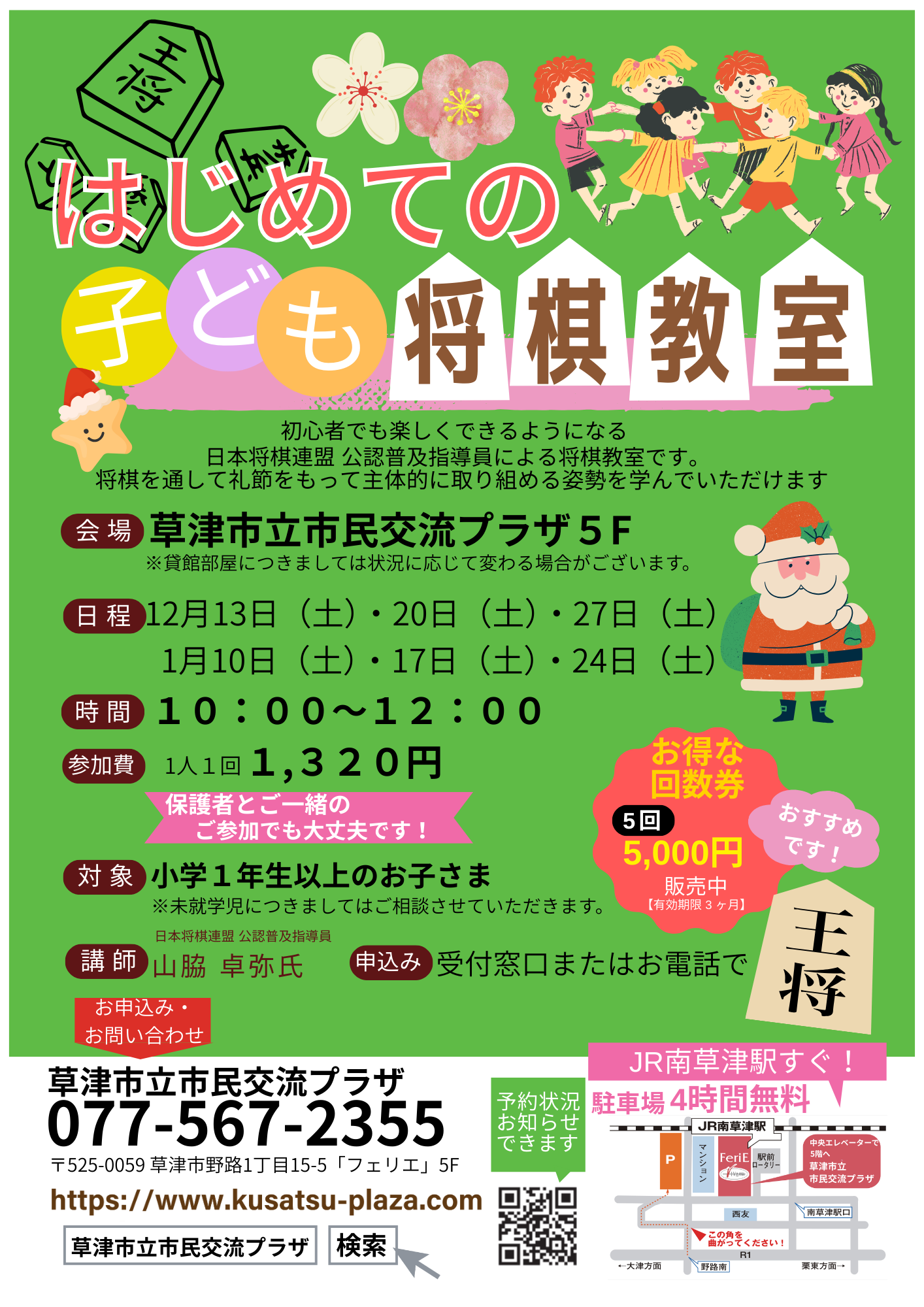 『初めての将棋教室』12月・1月スケジュール
