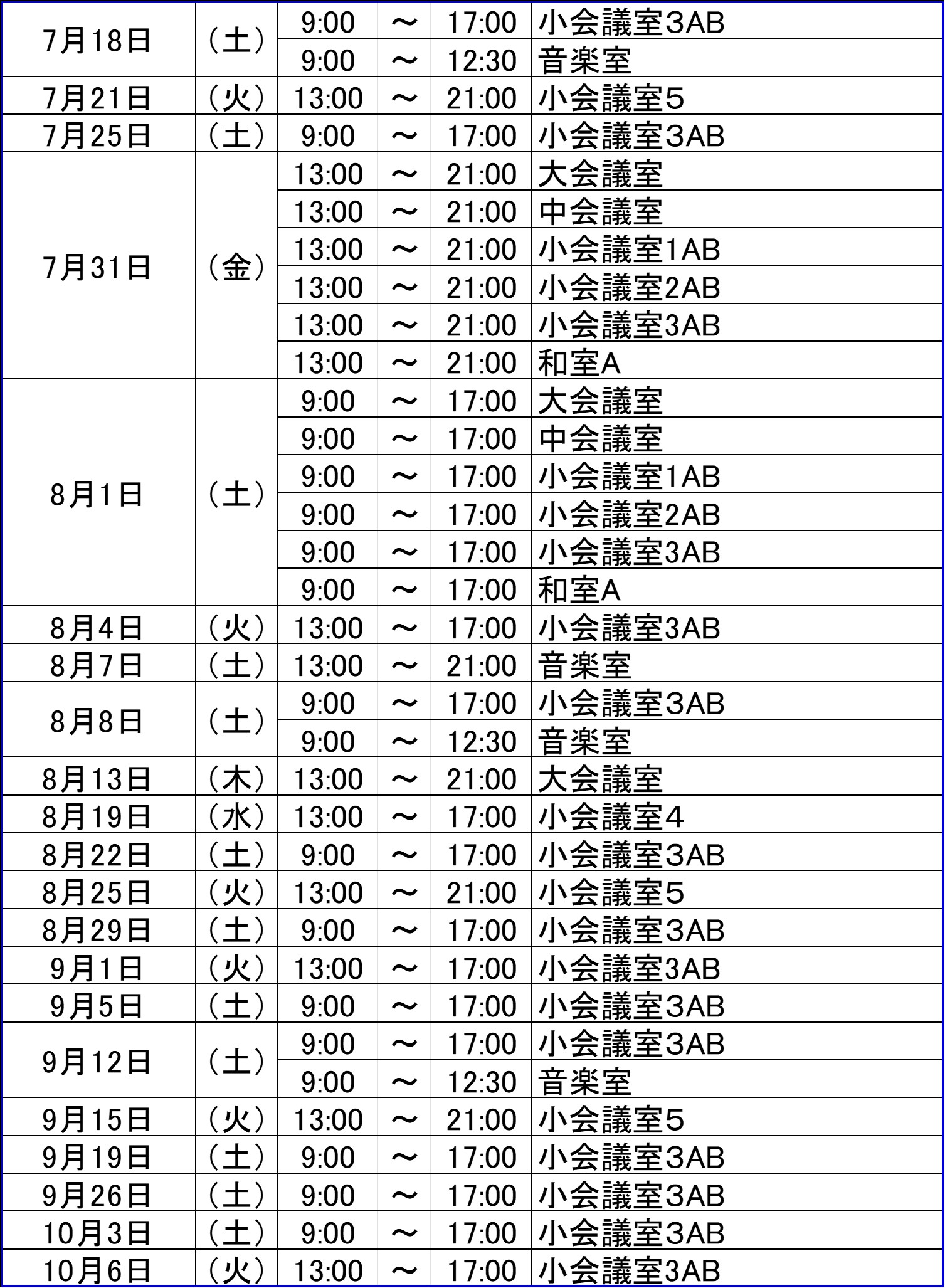 貸館のご予約
