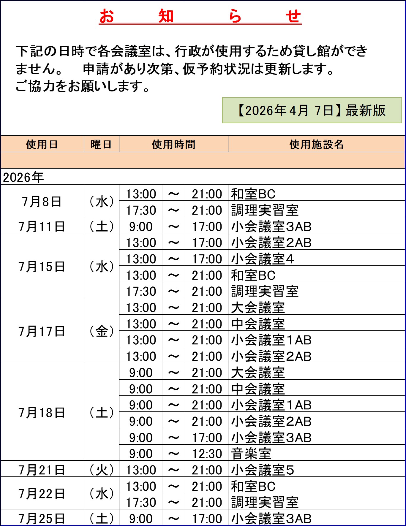 貸館ご利用方法