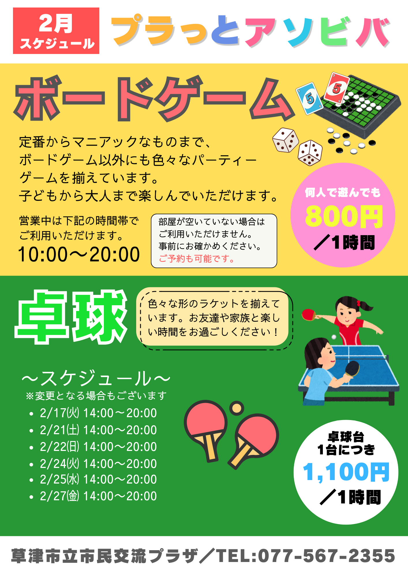 プラっとアソビバ『卓球』2月後半スケジュール NEW